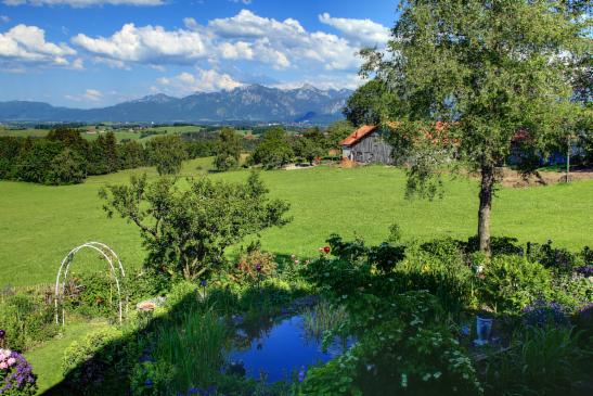 Vor dem großartigen Panorama der Bayerischen, Lechtaler und Allgäuer Alpen rollen sich die Fluren von Unterdeusch dicht an die Berge aus. Haus Egelsee liegt an dem wunderschönen Panoramasträsschen auf einer Wiesenkuppe mit einem phänomenalen Blick in alle Richtungen.