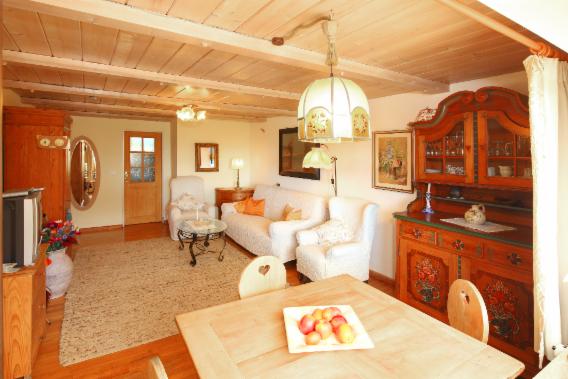 Komplett renovierte Wohnung, 55qm mit Garten, Blick Richtung Südosten über die rollenden Wiesen (naturgeschützt). 1 Schlafzimmer mit Doppelbett, 1 kleines Schlafzimmer mit Stockbetten, Wohnzimmer mit Essplatz und Sofa (Schlafmöglichkeit), Bad mit Dusche & WC. TV mit SAT-Anschluss und Radio.